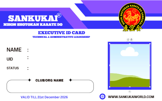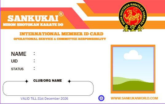 The Identity Card system of Nihon Shotokan Karate-Do SANKUKAI® is designed to represent hierarchy, responsibility, authority, and commitment within the organization. Each color-coded card signifies a specific role and level of responsibility. These cards are not merely identification tools, but symbols of trust, discipline, and dedication to SANKUKAI.